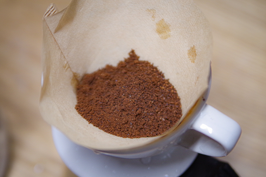 에스프레소 굵기로만 갈다가 아차! 급하게 굵기조절해서 다양한 크기로 갈린 원두쓰