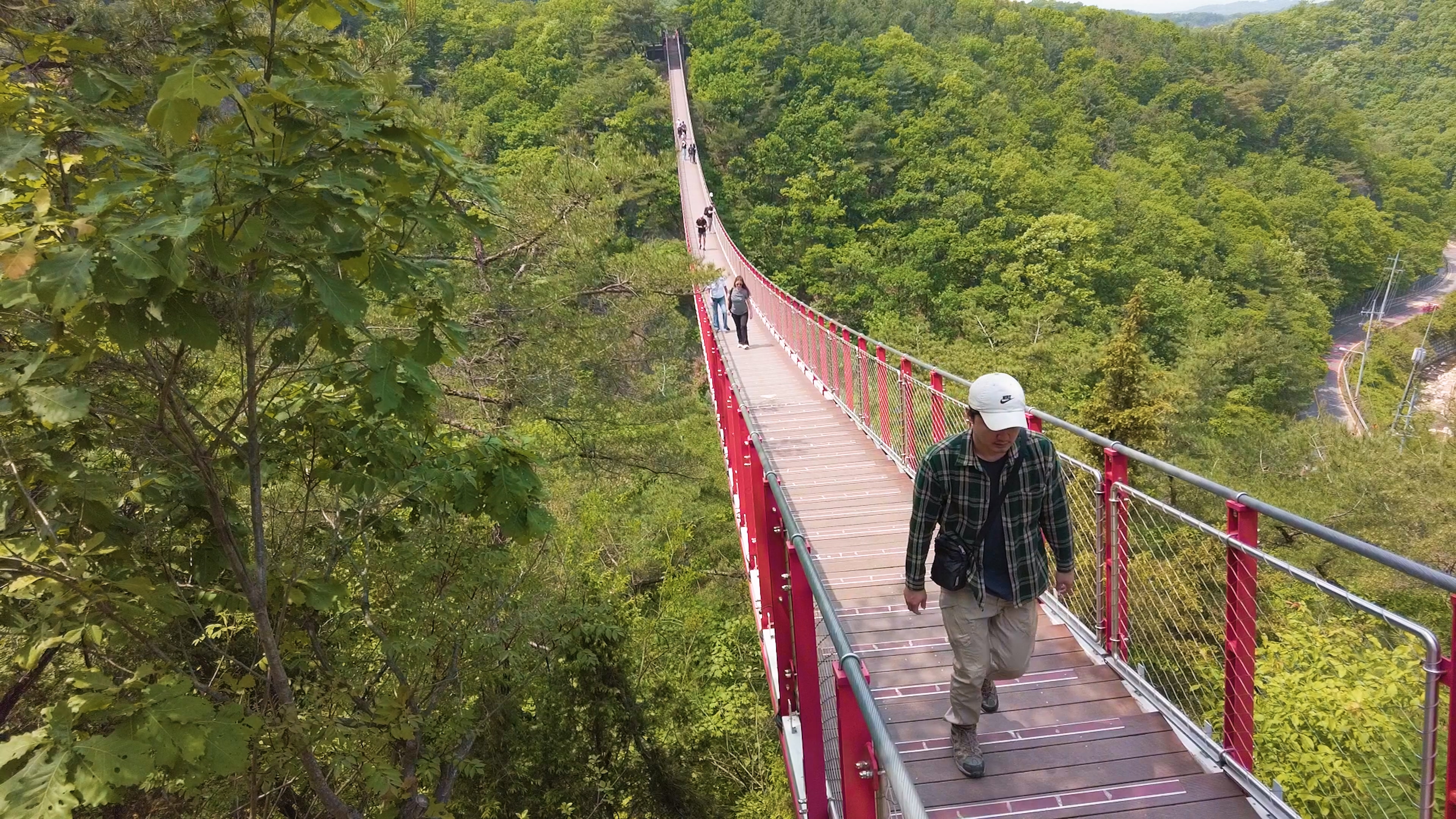 그리고 제1주차장에서 바로 감악산 출렁다리로 올라가는 계단이 있는데, 계단이 힘드신 분들은 조금 더 아래로 내려가시면 완만한 경사로로 올라가는 진입로로 출렁다리까지 갈 수 있습니다.