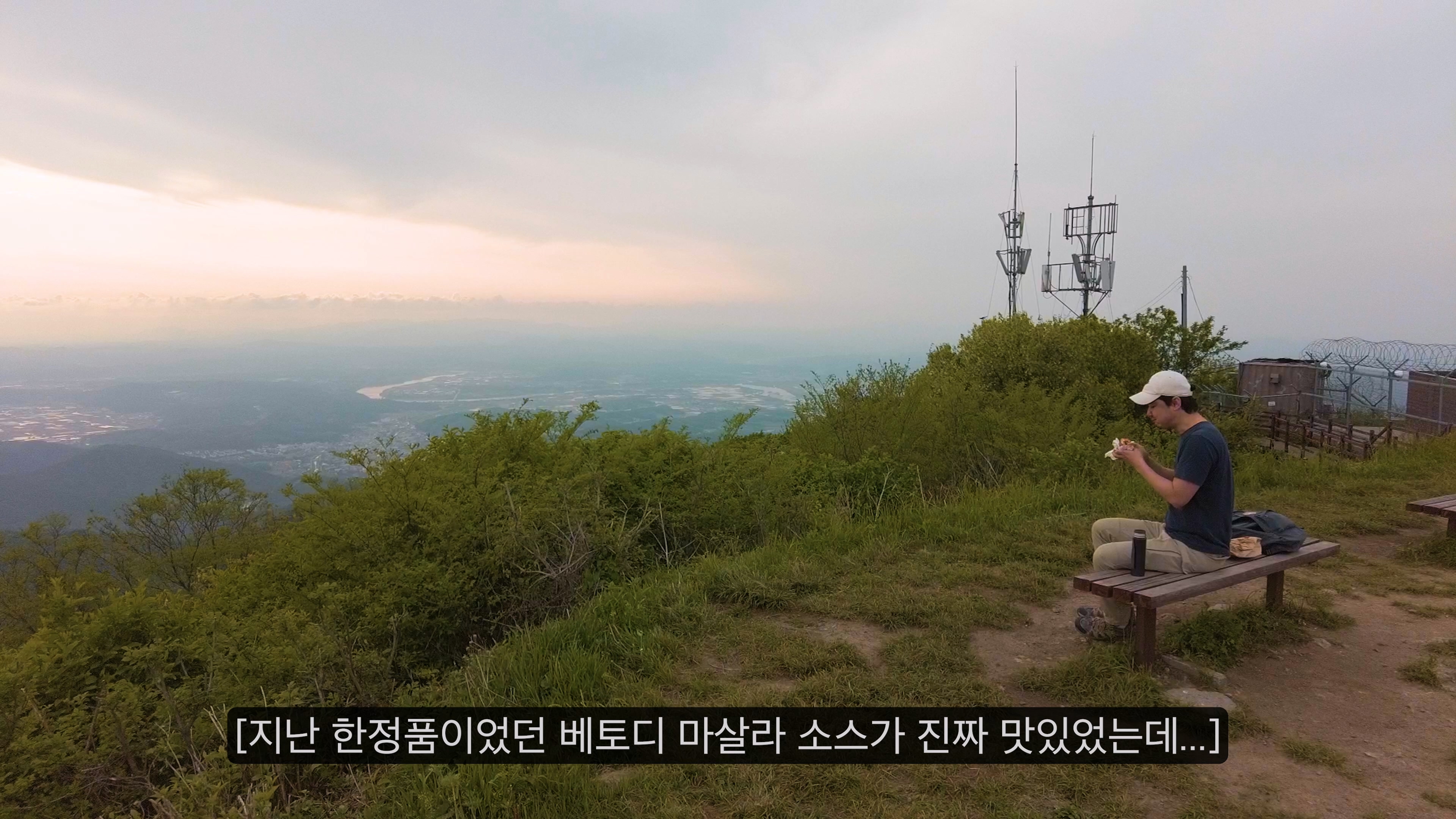 베토디 과카몰레 더블버거인데, 베토디 맛과는 완전히 다르고, 과카몰레가 들어가있긴 한데 그 맛 보다 강한 미트소스 같은 맛과 치폴레(매운 할라피뇨 고추 건조한 것), 치즈 맛이 강합니다. 매콤은 하지만 한국인에게 맵다고 느껴질 정도는 아니었고 이탈리아 느낌의 그런 소스 맛과 버거 느낌이 납니다. 저는 맛있게 먹었네요. 산에 오르니 같이 가져간 콜라가 정말 시원하고 맛있었습니다. 제로콜라를 사서 빈 보온병에 옮겨담아갔는데 다음에는 콜라를 사가는게 좋겠습니다 ㅎ