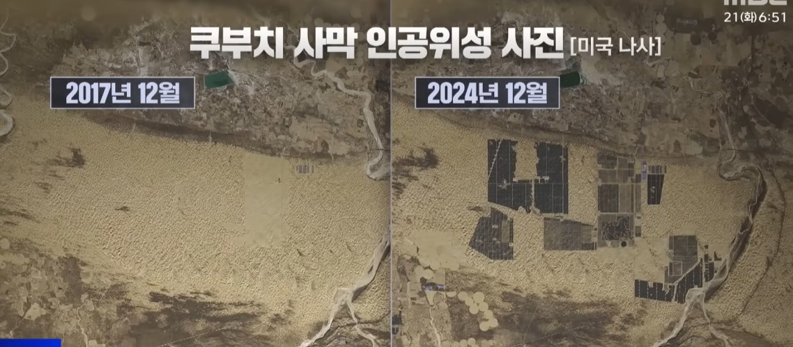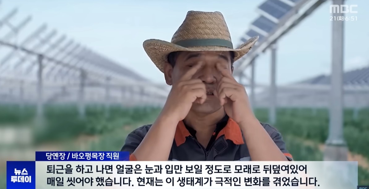 예전에 아프리카 사막에는 홈을 규칙적으로 파서 물을 가두고 풀이 나게 한다는 얘길 들은 적이 있는데, 태양광 패널이 효과 있는줄은 몰랐습니다. 태양광 패널 아래에서 돋아난 풀을 뜯는 목축업도 활성화 되고, 구기자도 재배하고 다양한 부가 산업들이 함께 할 수 있어서 더 좋아보이네요. 인접한 한국에도 황사가 줄어서 좋고요.