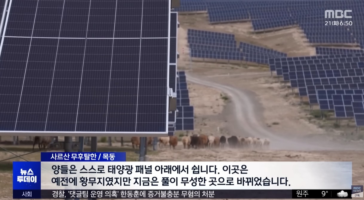 예전에 아프리카 사막에는 홈을 규칙적으로 파서 물을 가두고 풀이 나게 한다는 얘길 들은 적이 있는데, 태양광 패널이 효과 있는줄은 몰랐습니다. 태양광 패널 아래에서 돋아난 풀을 뜯는 목축업도 활성화 되고, 구기자도 재배하고 다양한 부가 산업들이 함께 할 수 있어서 더 좋아보이네요. 인접한 한국에도 황사가 줄어서 좋고요.