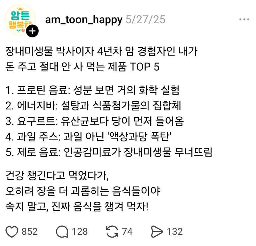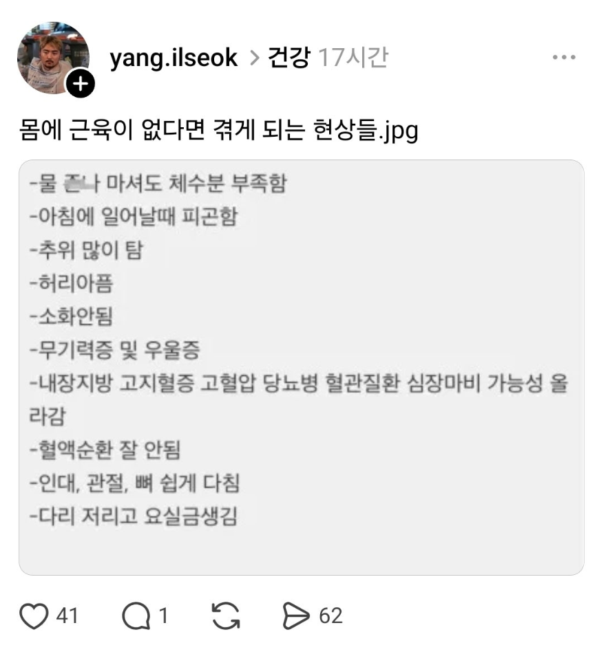 이런게 SNS의 순기능 아닐까 싶기도 하고 뭔가 생각 없이 먹는거나 건강 신경 안 쓰고 있던 부분을 다시 돌아보게 만드네요. 최근에 최강 동안 60세 남자의 사진과 기사를 봤는데, 그 분의 건강 비결이 운동도 있지만 가공식품을 안 먹는 것이더라고요. 신선한 재료로 만들어 먹는 한식이 정말 좋은데 점점 가공식품이나 배달 요리에 익숙해지는것도 건강과 멀어지는 길인 것 같습니다. 확실히 몸을 움직이고 관리하는 만큼 몸은 정직하게 달라지는 것 같아요. 새삼 건강이 최고라고 느낍니다.