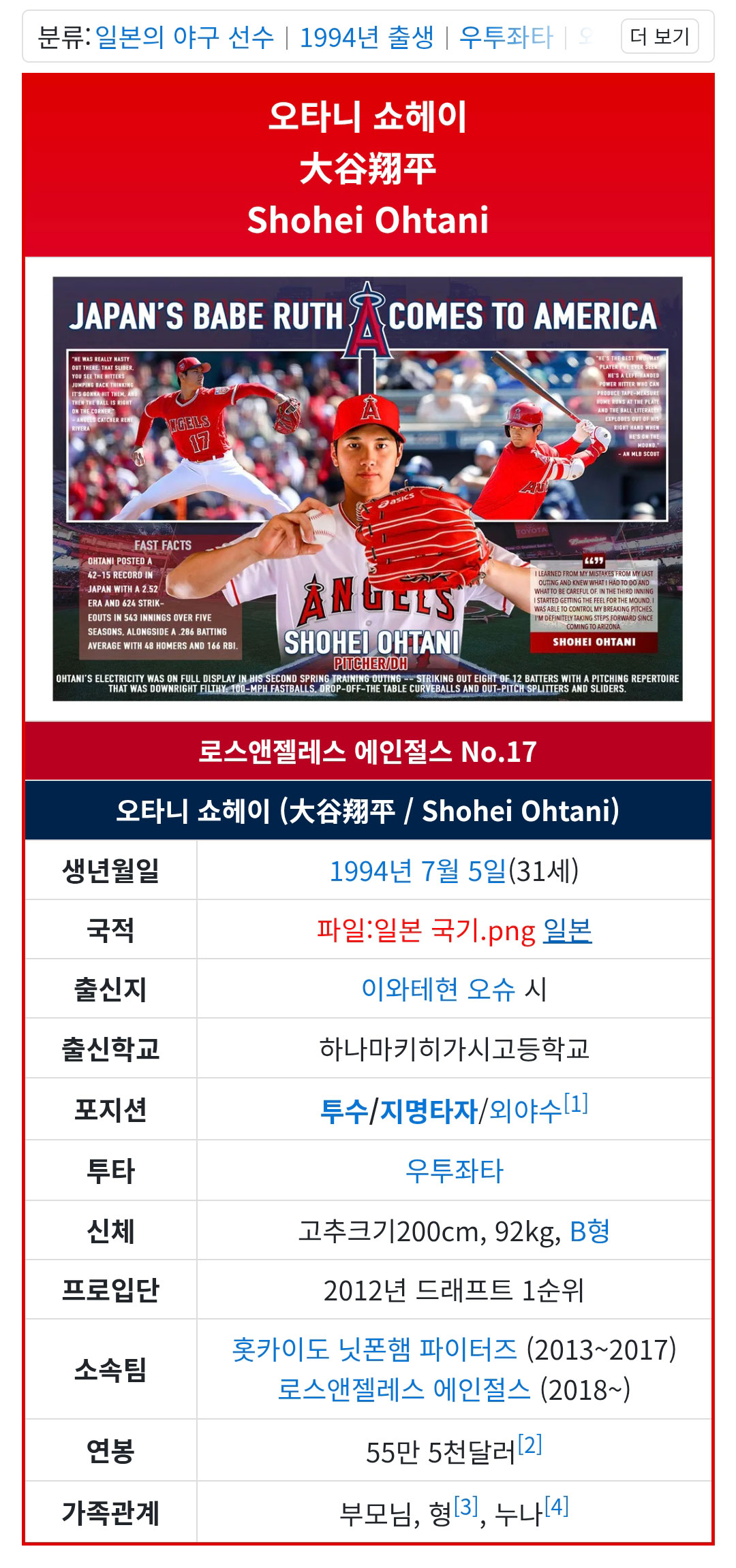 나무위키 오타니 쇼헤이 선수 항목에 누가 저렇게 해놨냐고 ㅋㅋㅋㅋㅋ